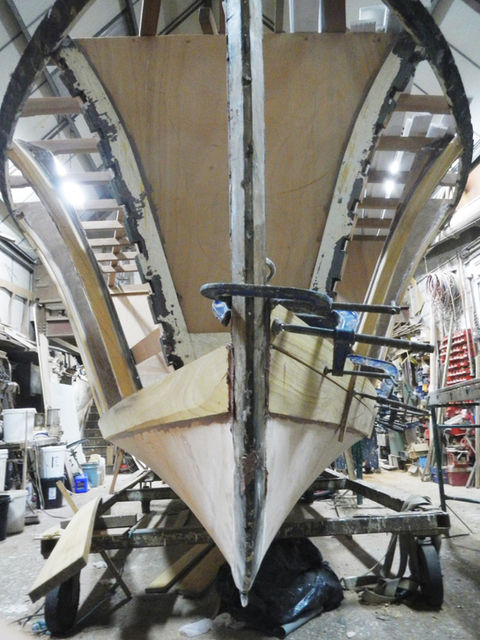 We were looking for a boat, but did not quite know what sort. However, we saw a wreck in Dennett’s yard which had the most fantastic op line and bows on profile. The sad sight we saw was a rotten old hull, listing to one side, with no deck, no motor and no owner.