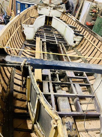 Her Majesty The Queen, Britannia provided the perfect Royal residence away from home and was a majestic symbol of the commonwealth. Her Jolly Boats used to ferry dignitaries and the Royal's themselves to and from shore when needed. With rotten deck, hull, rubbing bands and stem she has been brought to us for a complete restoration and we are looking forward to bringing this one back to her former royal standard.